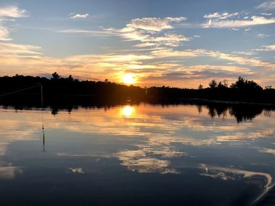 The Muskoka Cottage sits right on the water. It has a large private wrap around deck that you can dock your watercraft to. A great place to sit and have morning coffee or an evening glass of wine overlooking the lake.